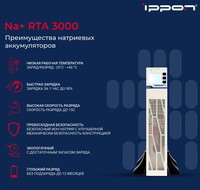 Описание ИБП Ippon Na+ RTA 3000 3000Вт 3000ВАОднофазные ИБП с двойным преобразованием IPPON Na+ RTA — инновационная серия с натрий-ионными аккумуляторами